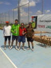 En el apartado individual Rafa Espejo y José María Sabariego sacaron sus partidos en 2 y 3 sets, dando éste último la sorpresa de la jornada, mientras que Pedro Agudo, Gregorio Sabariego y Manuel Malo cayeron en partidos muy disputados, éste último en el tercer set. Con una derrota parcial por 3 a 2 había que ganar los 2 partidos de dobles; la pareja formada por Rafa Espejo y Gregorio Sabariego fueron los primeros en conseguirlo en 2 sets con un tenso tie-break, mientras que la pareja formada por Pedro Agudo y Manuel Malo lograron el punto definitivo en el tercer set con mucha fe en la victoria, ya que este set lo empezaron perdiendo por 2 juegos a 0 y lo remontaron con un rotundo 6 a 2. Al final los componentes del equipo jiennense cantaron eso de "illa, illa, illa, nos vamos pa Sevilla". En el Campeonato Andaluz Junior individual celebrado en Rio Tinto (Huelva), 4 representantes de nuestro Club (Rafa Espejo, Román Madroñal, Alberto Rodriguez y Paloma Pulido) y 1 del C. T. Martos (Clara Iglesias) han representado muy dignamente a la provincia contra las mejores raquetas andaluzas de este categoría. 20-05-2009 En las instalaciones del Club de Campo, los días 23 y 24 de mayo se celebrará la primera FERIA del tenis.